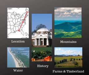 Boasting as the Mother of Presidents, Virginia has a long history starting with the Indians before the Jamestown settlement. With three presidents and the University of Virginia located around Charlottesville, this location has gotten hot. The surrounding mountains and farm life have been meticulously described by Thomas Jefferson. Desirability, has caused land prices to rise in Charlottesville/ Albemarle county, but surrounding counties offer many great opportunities.
